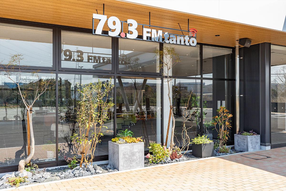 1階には、お取引先様やFMたんとにご出演いただく方などがリラックスした雰囲気で打合せできるよう、洗練されたデザインの空間を設けています。これにより、円滑なビジネスコミュニケーションを促進する環境を提供いたします。